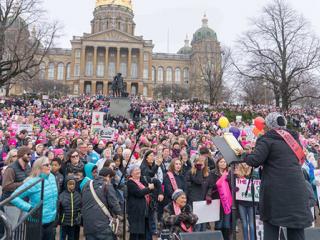 On Saturday, Jan. 21, Associate Professor Kesho Scott stood before a cheering crowd of 26,000 in Des Moines to discuss the history of the 123 marches on Washington, D.C.