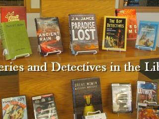 Detectives and Mysteries Book Display on 1st floor, Burling