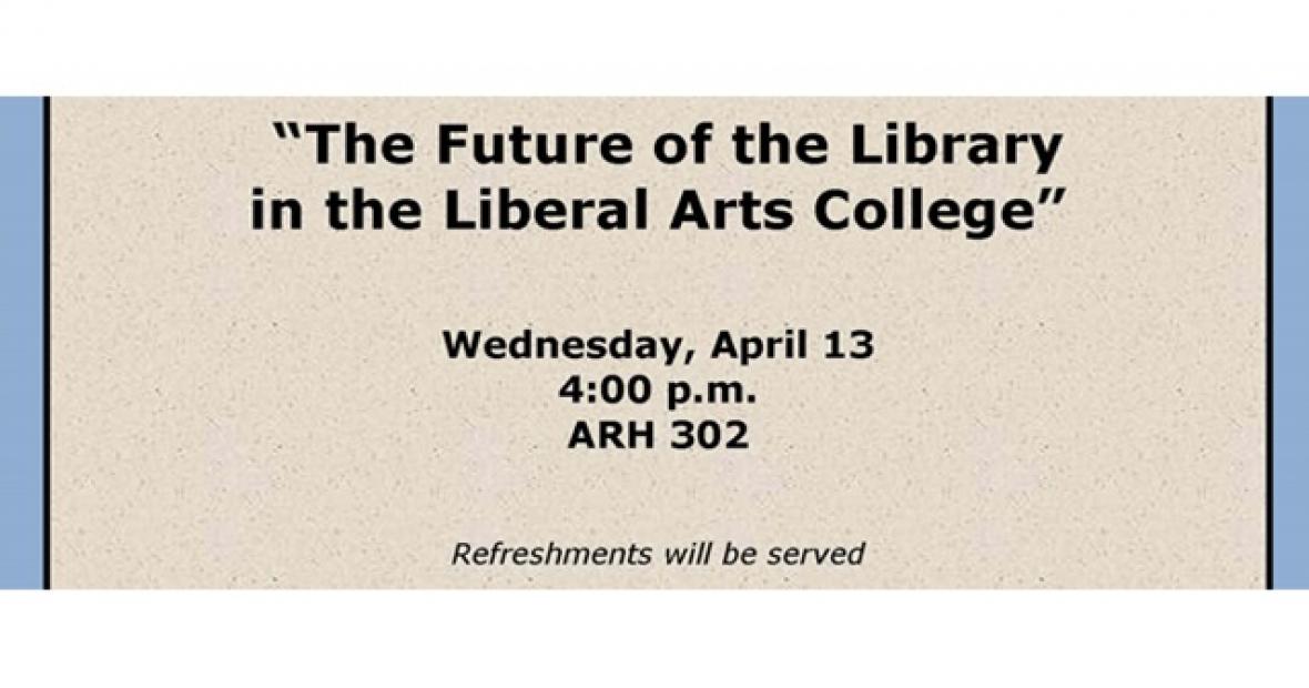 Grinnell College faculty, staff and students are invited to the college librarian candidate #2 presentation on “The Future of the Library in the Liberal Arts College” to be held at 4 p.m., Wednesday, April 13 in ARH 302.