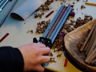 Students lined up on the first floor of Joe Rosenfield ’25 Center Jan. 26, patiently waiting their turn to make a personal set of reusable chopsticks from wood harvested to make way for the…
