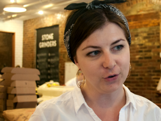 Anna Halpin-Healy ’13 gives a tour of Mast Brothers Chocolate